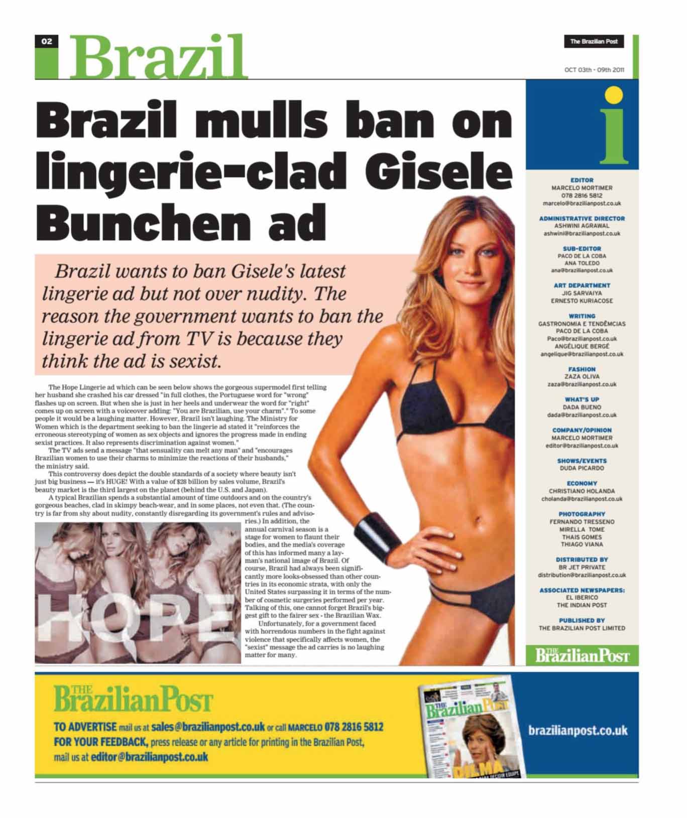 Brazil mulls ban on lingerie (The Brazilian Post Brazil October 2011)